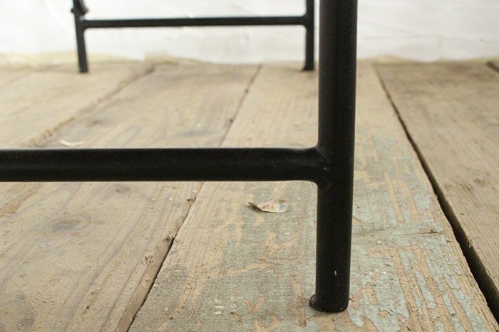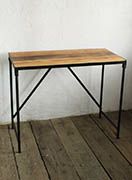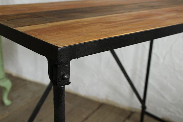 足回りは細身のフレームで構成されているのでとてもすっきりとしていますが、強度はアイアンを使っているので頑丈な作りです。 天板は古材を使っているので風合いに個体差がありますので予めご了承ください。