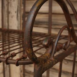 表面に特殊なアンティーク加工がされた、レトロなアイアンシェルフです。アールヌーボー調を感じさせる優美な曲線デザインも素敵。アイアンの錆びれ風合いを上手く表現した色合いや、少しペイントがはがれた質感まで、見事な仕上がりになってます!