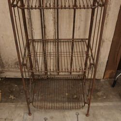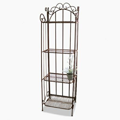 シャビーシックな雰囲気の鉄製シェルフ。スリムながら収納力抜群。 ◆ラスティック・ブラウンシェルフ