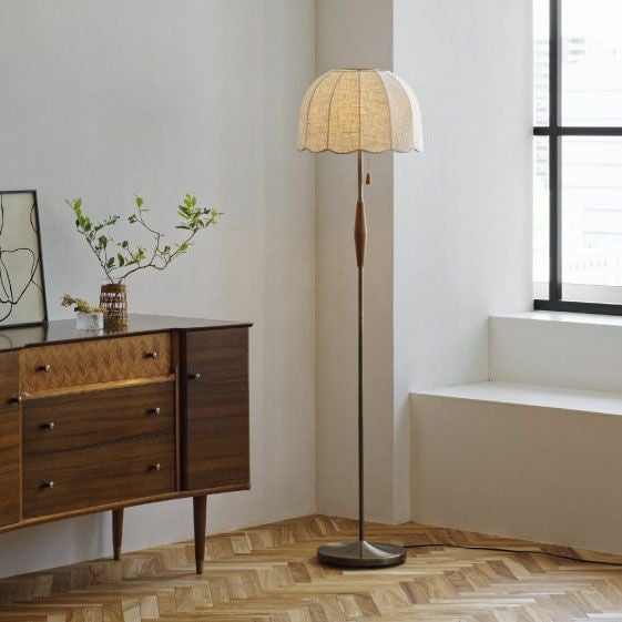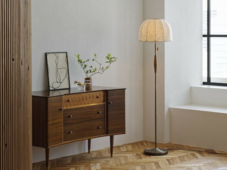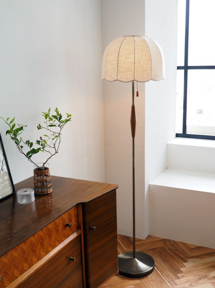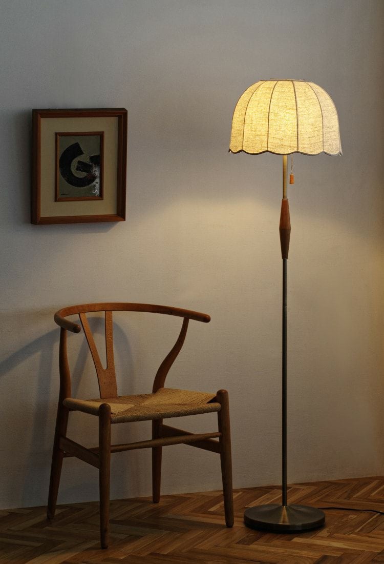 フレンチヴィンテージからインスパイアされたスカラップデザインのナチュラルなシェードが印象的な上品でレトロなフロアライト。