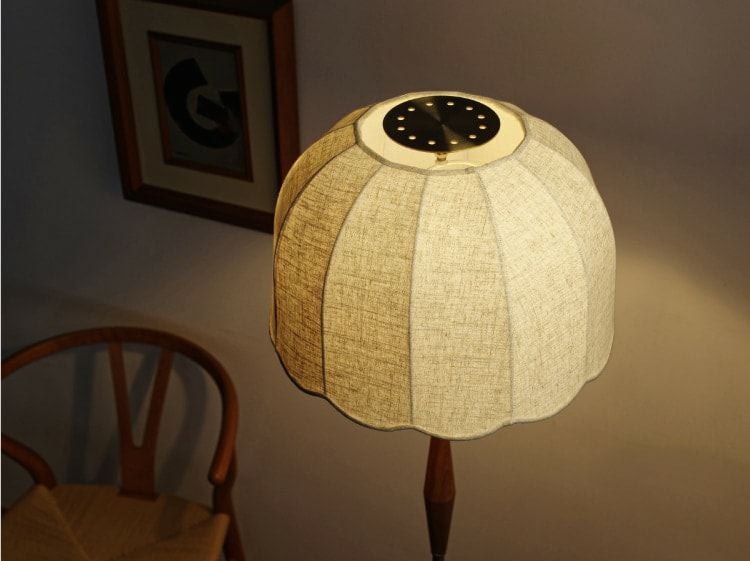 高級感がありインテリア性が高く空間に明かりを足したいときに、間接照明にぴったりの背の高いフロアランプ。シェルをモチーフにしたシェードにスリムなベースを合わせたレトロで上品なルックが素敵。家具の上に置いたり、天井から吊り下げる必要がなくランプ単体で成立する照明です。