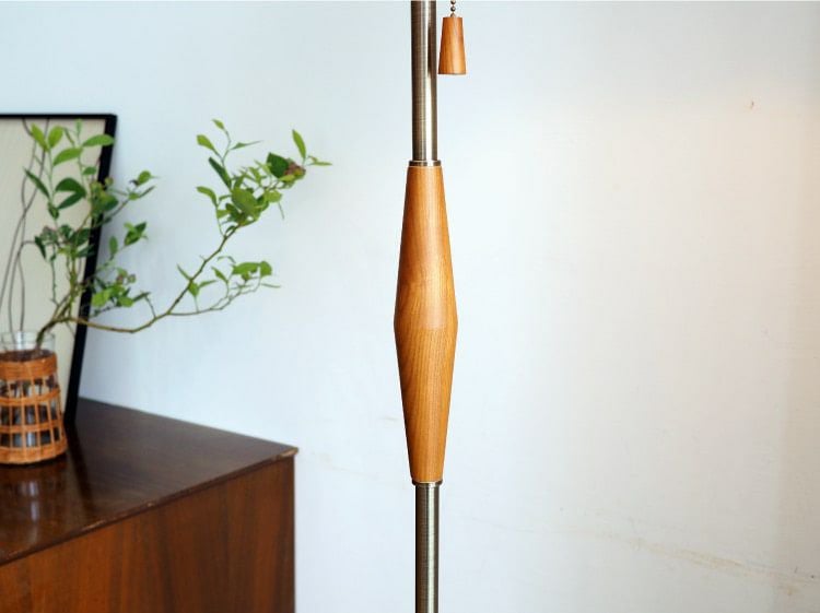 お部屋の隅やベッドサイド、玄関に置く明かりに丁度良さそう。スラっとしたシルエットなのでちょっとしたスペースに置く事ができます。シェードに付いたプルスイッチでON/OFFが切り替えられます。シェードは電球に直接クリップして固定するタイプなので電球の交換に手間がかかりません。