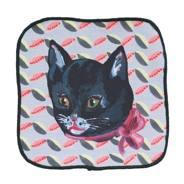 Nathalie Lete(ナタリーレテ)/ガーゼタオルハンカチ 黒猫 メガネ拭き スマホ拭き