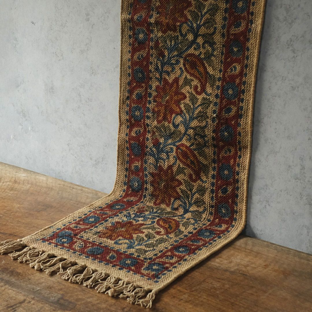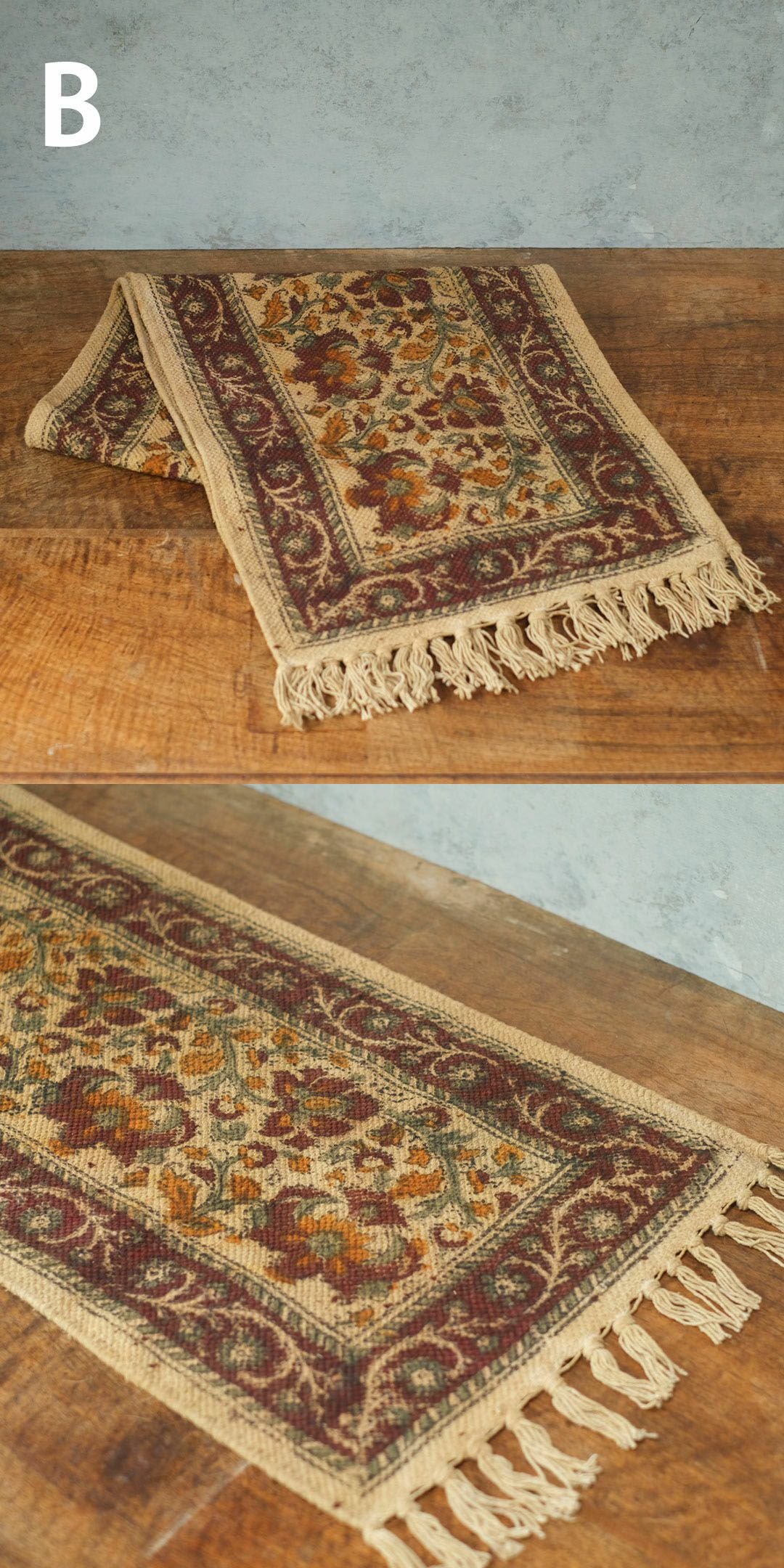 インド伝統の技法、カラムカリで染め上げたキッチンマット。肌触りが良く、吸水性にも優れているので、キッチンマットに最適です。