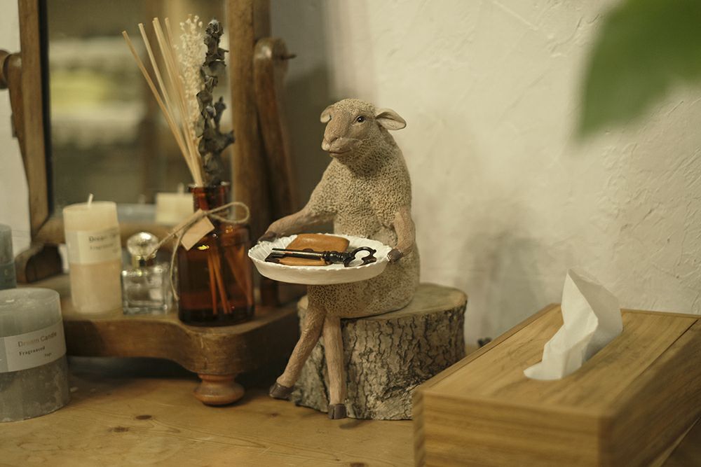 動物をモチーフにした置き物はメルヘンチックな空間作りに一役買います。現在は全体的に暗めのトーンになっています。下部の画像をご確認ください。