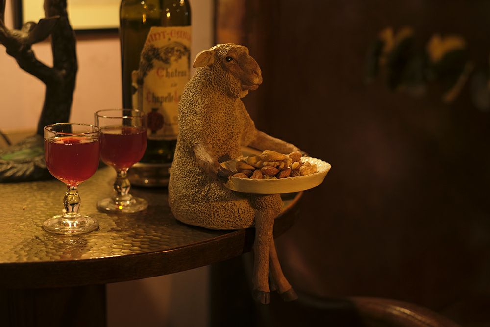 ちょっぴり格好をつけた足を組んだ凛とした姿や今にも話しかけてきそうなシュールな表情が何とも愛くるしい羊のオブジェ。
