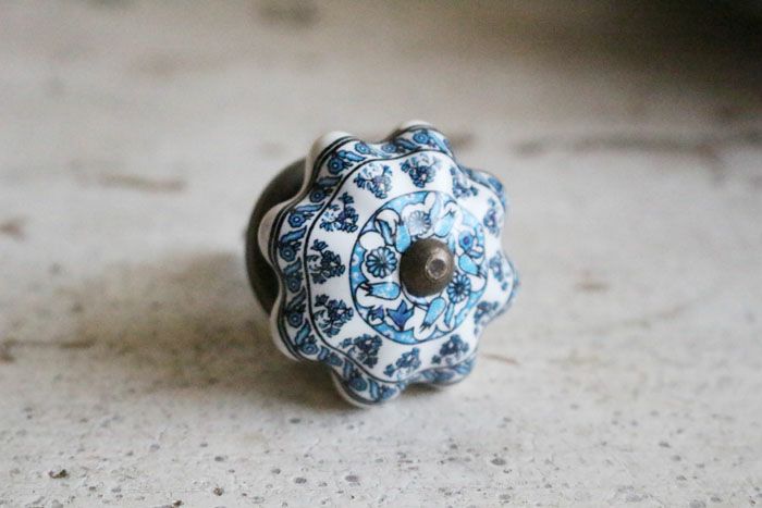 エキゾチックなエスニックスタイルのデザインが可愛い引き出しやキッチンの扉に使える陶器の取っ手です。
