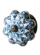 ブルーフラワー・セラミックノブ 陶器製 手作り 引き出し、戸棚に取り付け可能の取っ手