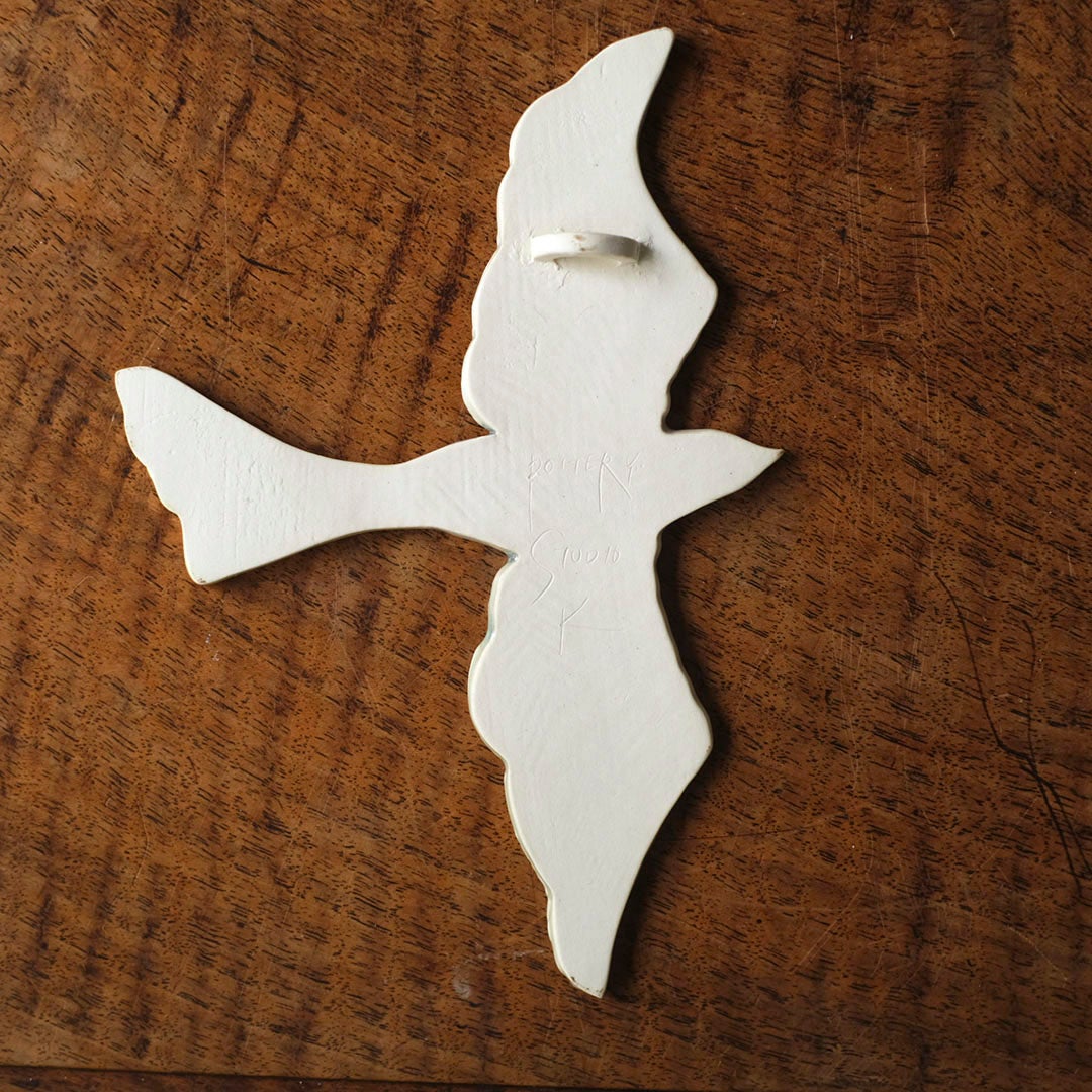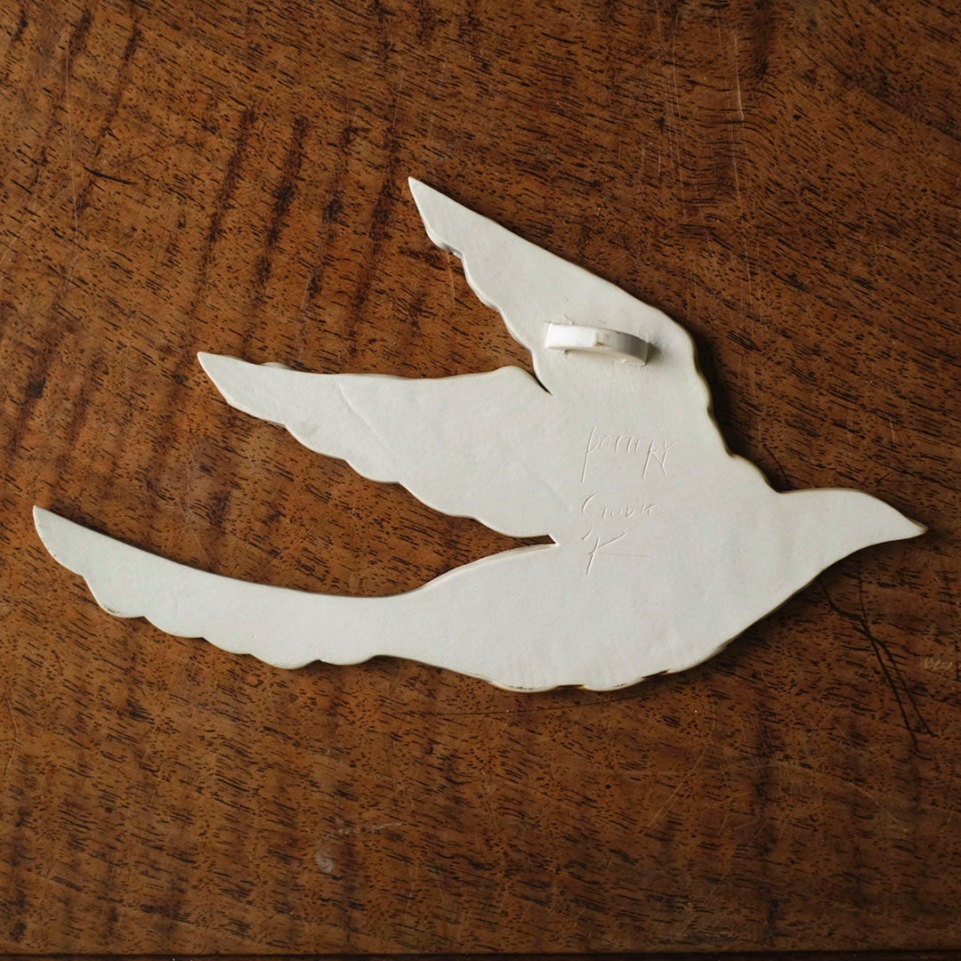 ひとつひとつ手描きで施された繊細な模様と、鮮やかな尾羽がアクセントとなり、空へと舞い上がる鳥の自由な精神を象徴しています。白壁や木の棚に飾れば、ナチュラルな空間に軽やかなリズムを与え、インテリアに詩的な彩りを添えてくれる一品です。