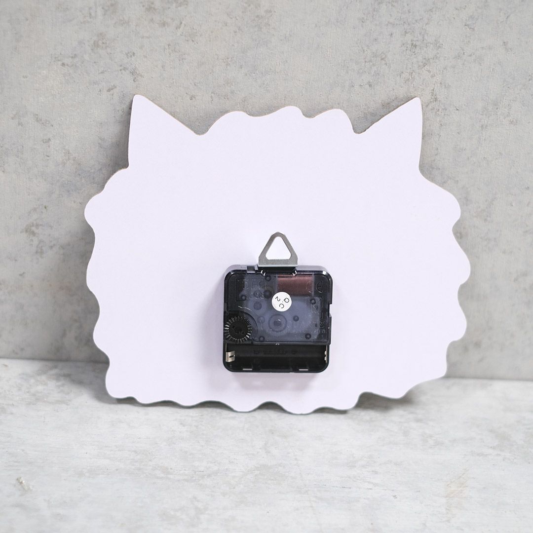 イラストレーターとWEBデザイナーの制作ユニット、山鳩舎(やまばとしゃ)による、かわいくてちょっとゆるい猫の顔の壁掛け時計。