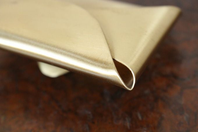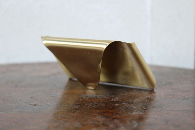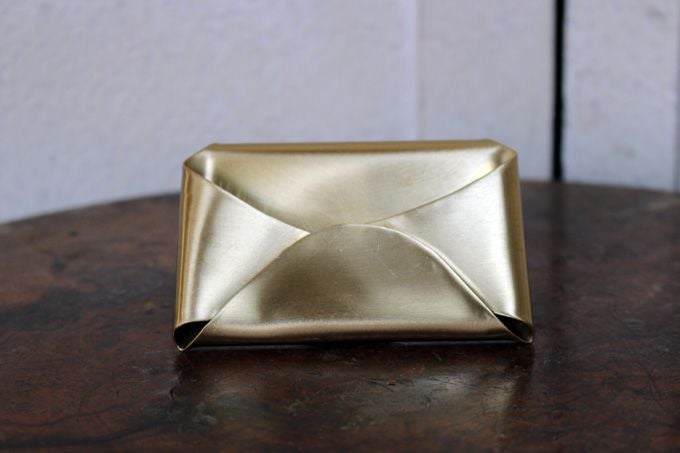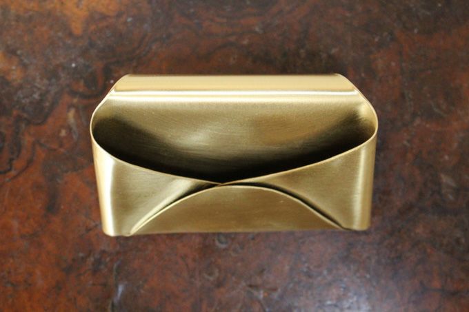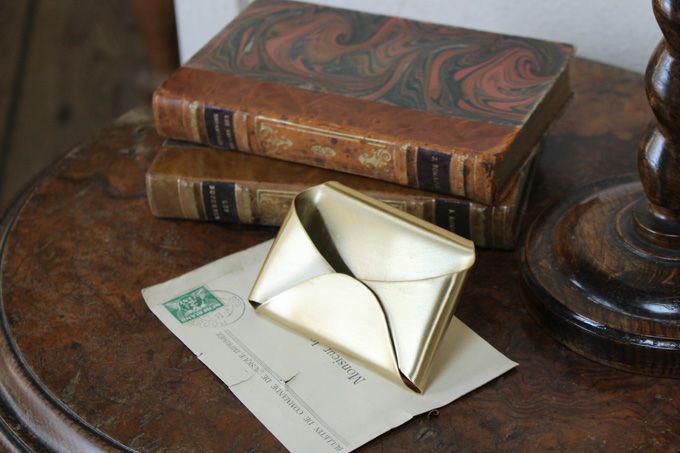 封筒の形をしたユニークなブラス製のカードホルダー。高級感のある上品な仕上がり。