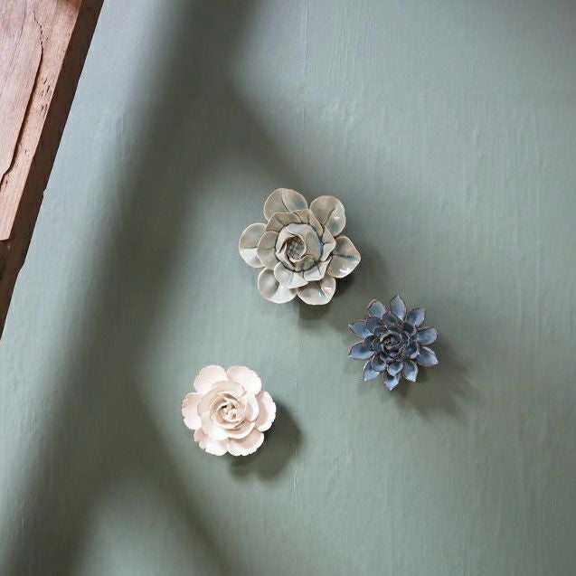 陶器のフラワーオブジェ ウォールデコ/ブルー