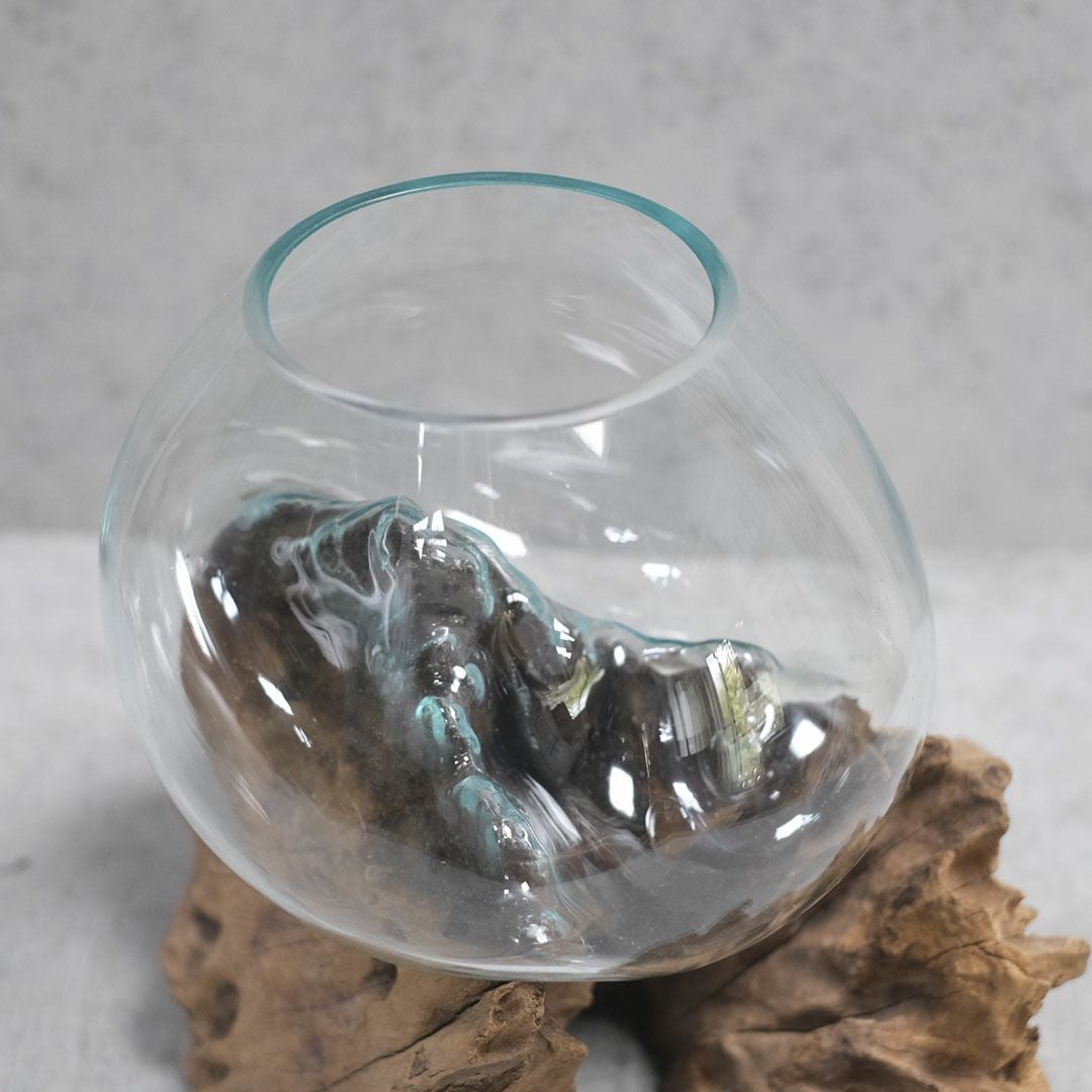 膨らみのある凸面ガラスと陶器のラウンドフレームを合わせたガラスケース Convex Glass Case DF (S)