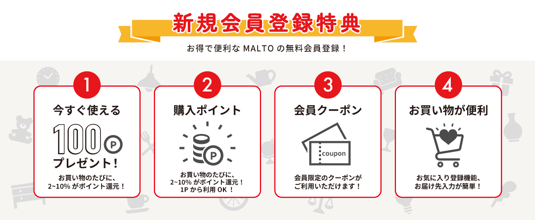 メールマガジンをご購読いただくと、新製品やセール情報をお届けします。またメールマガジン限定クーポンやプレゼントなどお得な情報をお届けします。